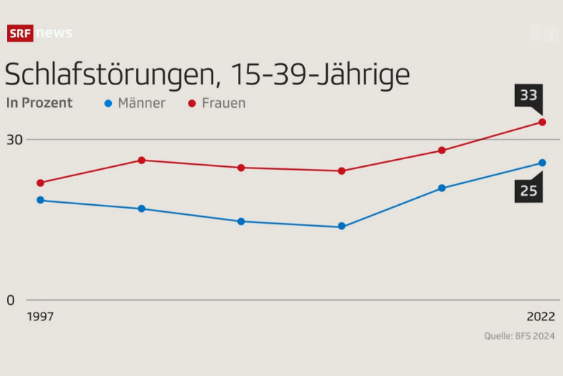 Mittlerweile leiden in der Schweiz über 80% der Menschen an Schlafproblemen.