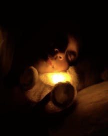 Spür, wie der Rhythmus seiner sanften Atmung und sein warmes Bauchlicht dich beruhigen. Dein Körper entspannt sich, dein Kopf wird leichter, und du gleitest sanft in den Schlaf.