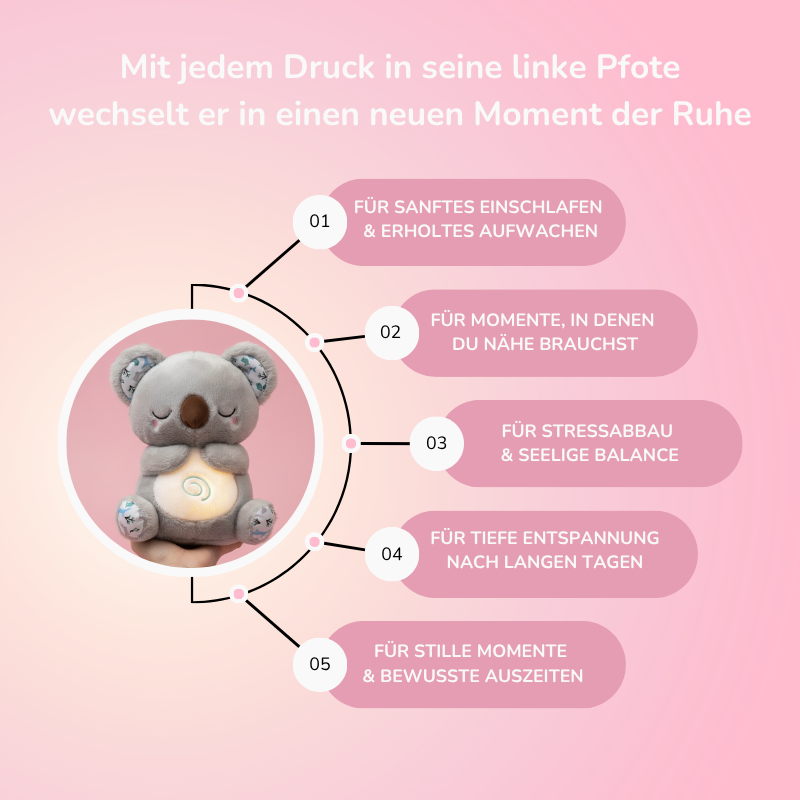 Der Calm Koala schenkt dir die Ruhe, die du gerade brauchst. Ohne Ablenkung, nur eine sanfte Umarmung, die dich hält.